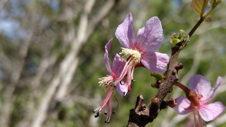 It blooms profusely with fragrant pink blossoms in spring like a peach or redbud tree, and bees produce honey from the floral nectar.