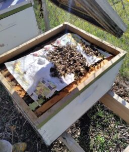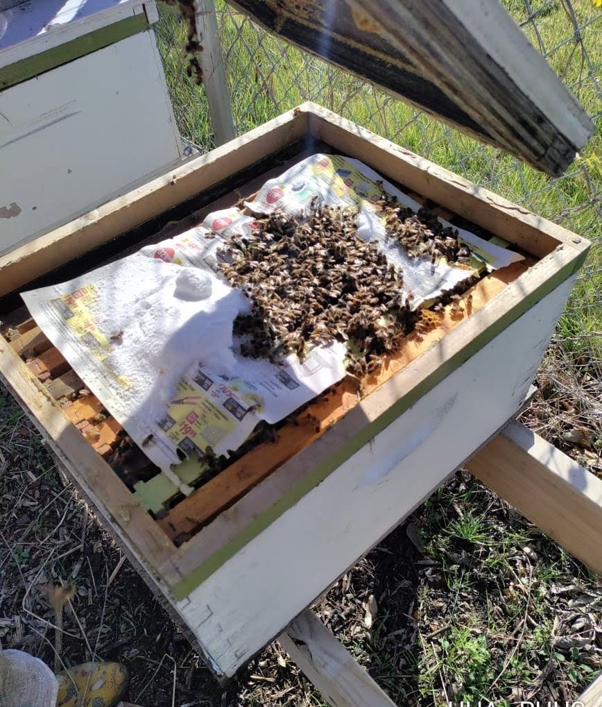 While making rounds to different property yards we’ve been checking on our colonies. We’ve continued using the mountain camp method, which involves placing a sheet of newspaper over the frames and adding about two pounds of sugar on top. This provides an emergency food source in case the bees begin using their fall honey stores. In some cases we’re noticing colonies are consuming all of the sugar within about a two week period. We will continue providing the honeybees with mountain camp method until we start noticing more flowers in bloom to provide a natural food source for them.