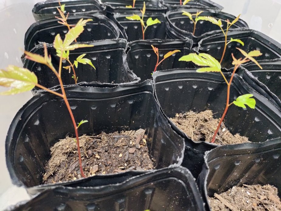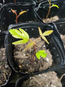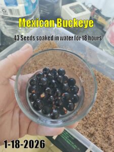 In addition, we’ve started vegetable seeds indoors and started certain tree varieties by cuttings and seed – both to support our honeybees and for personal use. Shown in the picture are Mexican Buckeye saplings grown from seed.